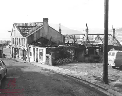 Y Co-op yn Bridge Street yn ystod y gwaith dymchwel