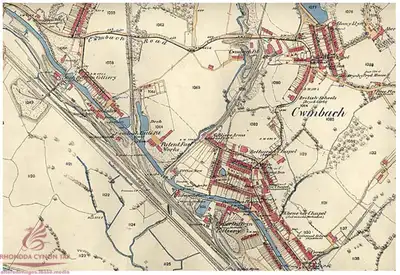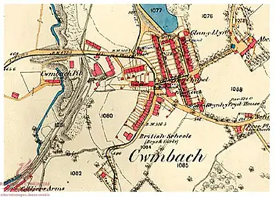 AMae Glofa Abernant-y-Groes yn ymddangos ar y map Arolwg Ordnans hwn dan yr enw Glofa Cwmbach